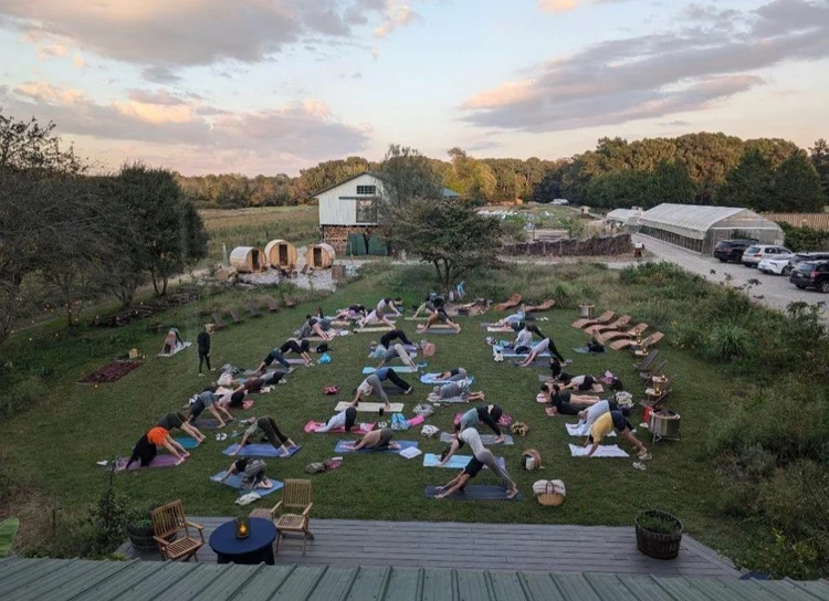 Beyond growing food, we host a variety of projects and wellness offerings. Join us for yoga or sound baths in the barn, farm workouts, pottery workshops, field spa experiences, a support group around the fire, breakfast gatherings, or a Celeste Dinner Experience—or book the farm for a private event. We make our own compost and steward a vibrant ecosystem that includes chickens, worms, bees, and expanding wildflower meadows designed to support native flora, fauna, and pollinators.